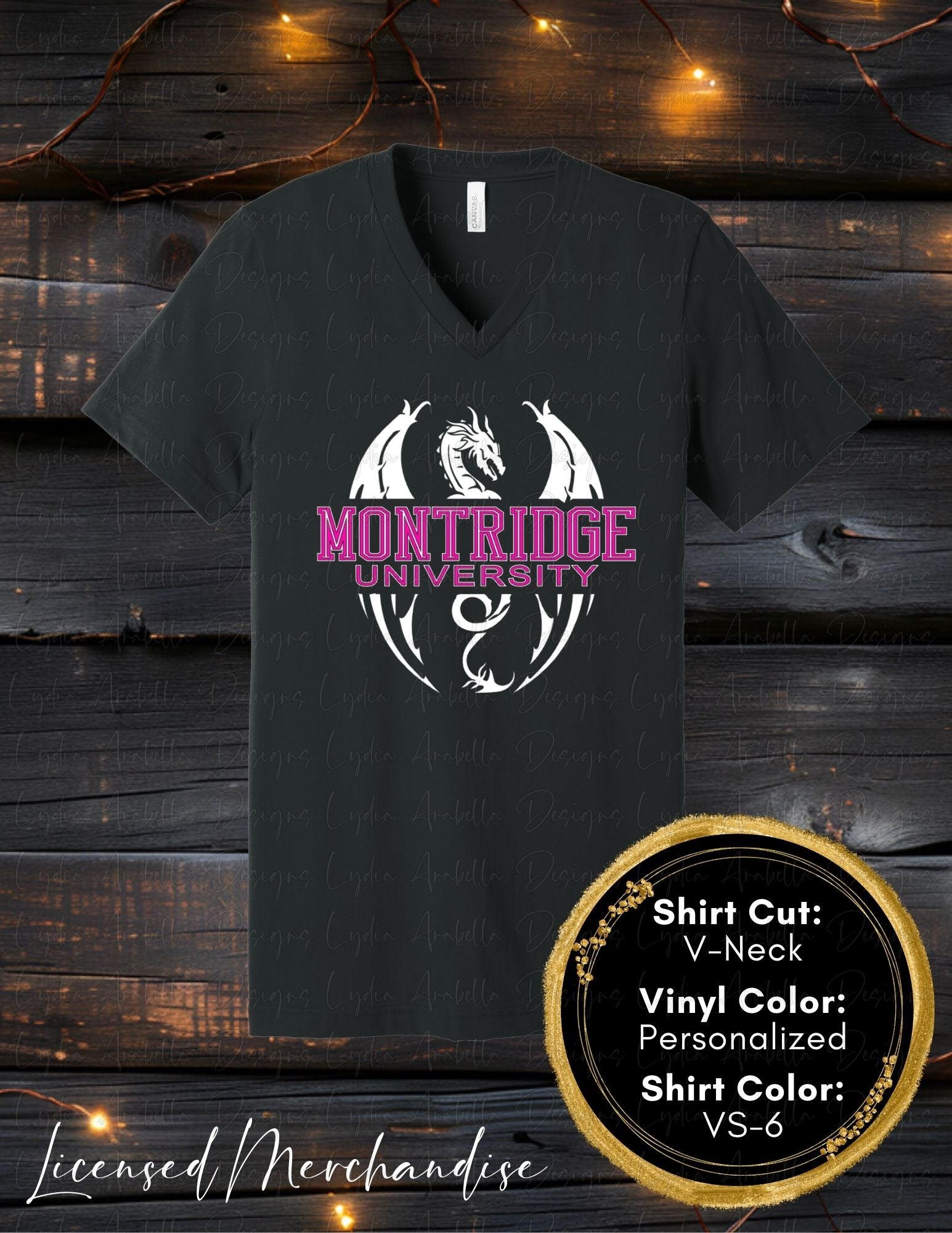 Wear your fandom proudly with this Montridge University t-shirt. Featuring the fan made Montridge University logo, this shirt is a must-have for fans of Sadie Kincaid's Broken Bloodlines series. Choose from a classic crew neck or trendy v-neck style. Make a statement with our high-quality, comfortable shirt.